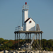 08.10.2008, Mittwoch, ca. 74 Meilen, Fahrzeit 1 Std 50 min. Wir frühstücken Eier mit Toast und Kaffee in einem sehr gut besuchten Family Inn für ! 20$. Das Interieur erinnert an die späten 50iger Jahre, die Bedienung war sehr nett. Die Fahrt geht auf der 1A weiter nach Portsmouth. Wir spazieren zum Meer und stehen nach wenigen Schritten vor der Memorial Bridge, die New Hamshire mit Maine verbindet. Durch einen schön angelegten Park laufen wir weiter zum Strawbery Banks Museum, und zurück zur Hauptstrasse zum Auto. Die Sonne scheint, es macht Spaß zu laufen. Unsere Fahrt geht weiter nach Norden auf der 1A und ohne Zwischenstop verlassen wir die Küste auf der 11 zu den Lakes. Die Alleen rechts und links der Strasse lassen erstmalig Indian Summer feeling aufkommen. Wir fahren in die Touristenhochburg Weirers Beach am Lake Winnipesaukee - hier ist absolut tote Hose! Die Saison ist vorbei. Wir beziehen ein Doppelzimmer im Half Moon Motel & Cottages. Die Terrasse bietet in der warmen Sonne versöhnlich den Blick auf den See. Am Nachmittag schauen wir uns Meredith an, das ebenso ausgestorben ist. Die Seegrundstücke und Häuschen wirken verlassen. Dennoch kann man sich das Leben im Sommer hier vorstellen. Alles ist irgendwie schön angelegt. Unser Höhepunkt des Tages ist das Abendessen in einem gut besuchten mexikanischen Restaurant, einem Biker Treffpunkt mit Live-Musik.